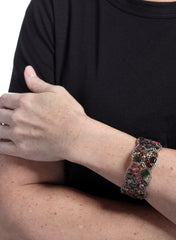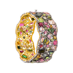 Bright, faceted tourmaline stones are accented with pave diamonds.