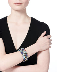 An opulent display of opals and tanzanite stones is set with diamonds.