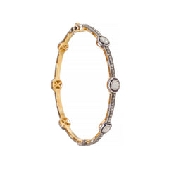 Rose cut and pave diamonds are set in a stackable silver bracelet.