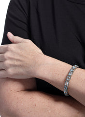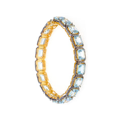 Bright blue topazes are set with diamonds in a stackable bracelet.