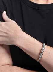 Tiny diamonds surround rose cut diamonds in a flashy, stackable bracelet.