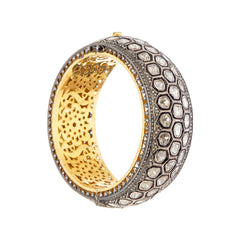 Rosecut diamonds are set in black enamel and silver honeycomb. Great for stacking with other bangles and bracelets.