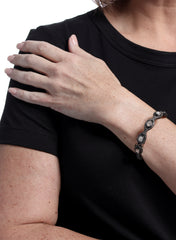 Rose cut and pave diamonds pop against dark enamel and bright silver.