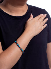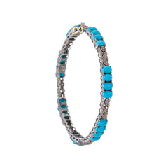 A stackable bracelet of smart, cabochon turquoise stones and diamonds.