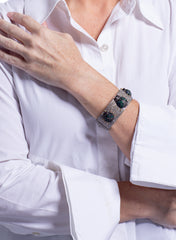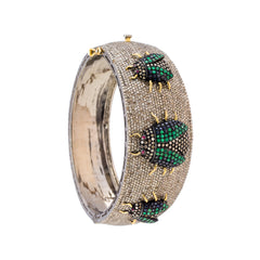 Gold-legged and gem-studded beetles sit atop a bracelet of tightly set diamonds.