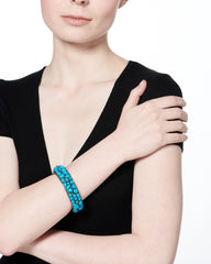 A beautiful bracelet of irregularly set turquoise stones bounded by diamonds.