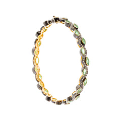 Eye shaped emeralds are intertwined with a string of diamonds.