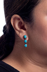 Cabochon turquoise stones are set with diamonds for an understated, colorful look.
