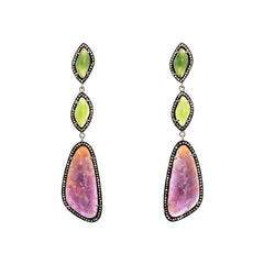 Multicolored sapphires and jade slivers are set with diamond surrounds.