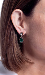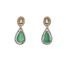 Rose cut diamonds and faceted teardrop emeralds are set with tiny diamonds.