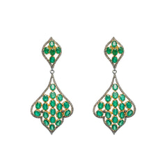 Faceted emeralds pop against their gold plated settings in these openwork earrings.