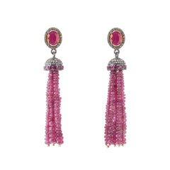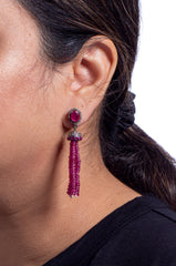 Diamond-capped tassels of faceted rubies hang from ruby studs.