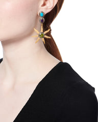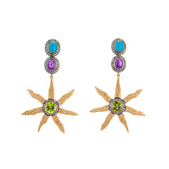 Peridot and diamond stars hang from pairs of turquoise and amethyst studs.