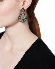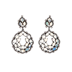 Opal and diamond studs support a lovely ring of cabochon opals that are accented with more diamonds.