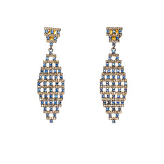 Rows of tiny diamonds and faceted sapphires are set in eye-catching, geometric shapes.