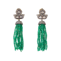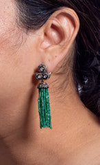 Diamond-capped emerald tassels hang from ornate diamond studs.