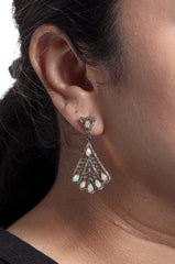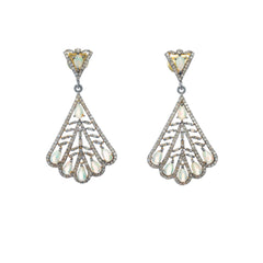 An elegant fan of diamonds is set with cabochon opals for a bright, striking look.