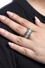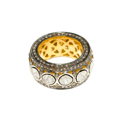 Rose cut diamonds wrap around a diamond-accented band ring.