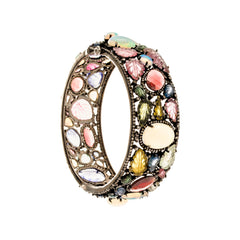 Hand-carved garnets, tanzanite stones and multi-colored sapphires are intricately set with opals and diamonds.