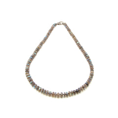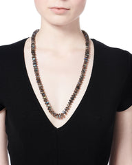 Labradorite rondels are set along a knotted silk cord and connected by a diamond clasp.