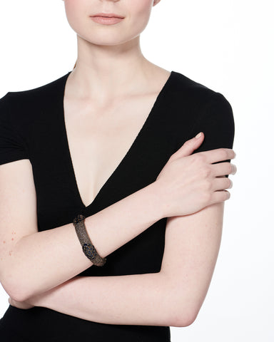 Clusters of faceted sapphires are set on a sparkling diamond backdrop.