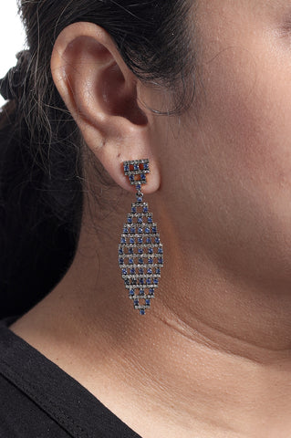 Rows of tiny diamonds and faceted sapphires are set in eye-catching, geometric shapes.