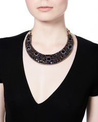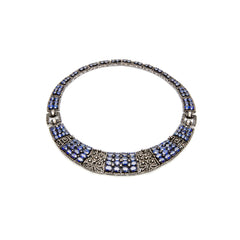 This stunning geometric collar is set with faceted sapphires and intricate diamond work.
