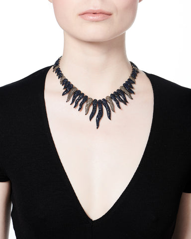 Waves of sapphires and diamonds are linked together and joined by a clasp.