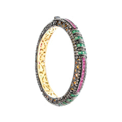 Rows of square cut rubies are intersected by perpendicular rows of square cut emeralds. Sleek and modern.